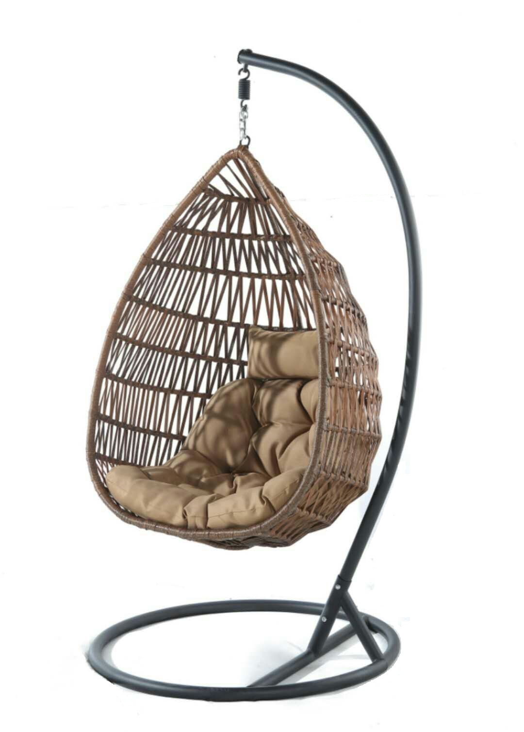 Размер корзины: H131хW91хD68 см Стойка: H2,0xD1,0 м, Каркас сталь. Материал плетения на корзине: искусственный ротанг. Подушка коричневая в комплекте. Ткань с водоотталкивающей пропиткой. Допустимая нагрузка: 120 кг.