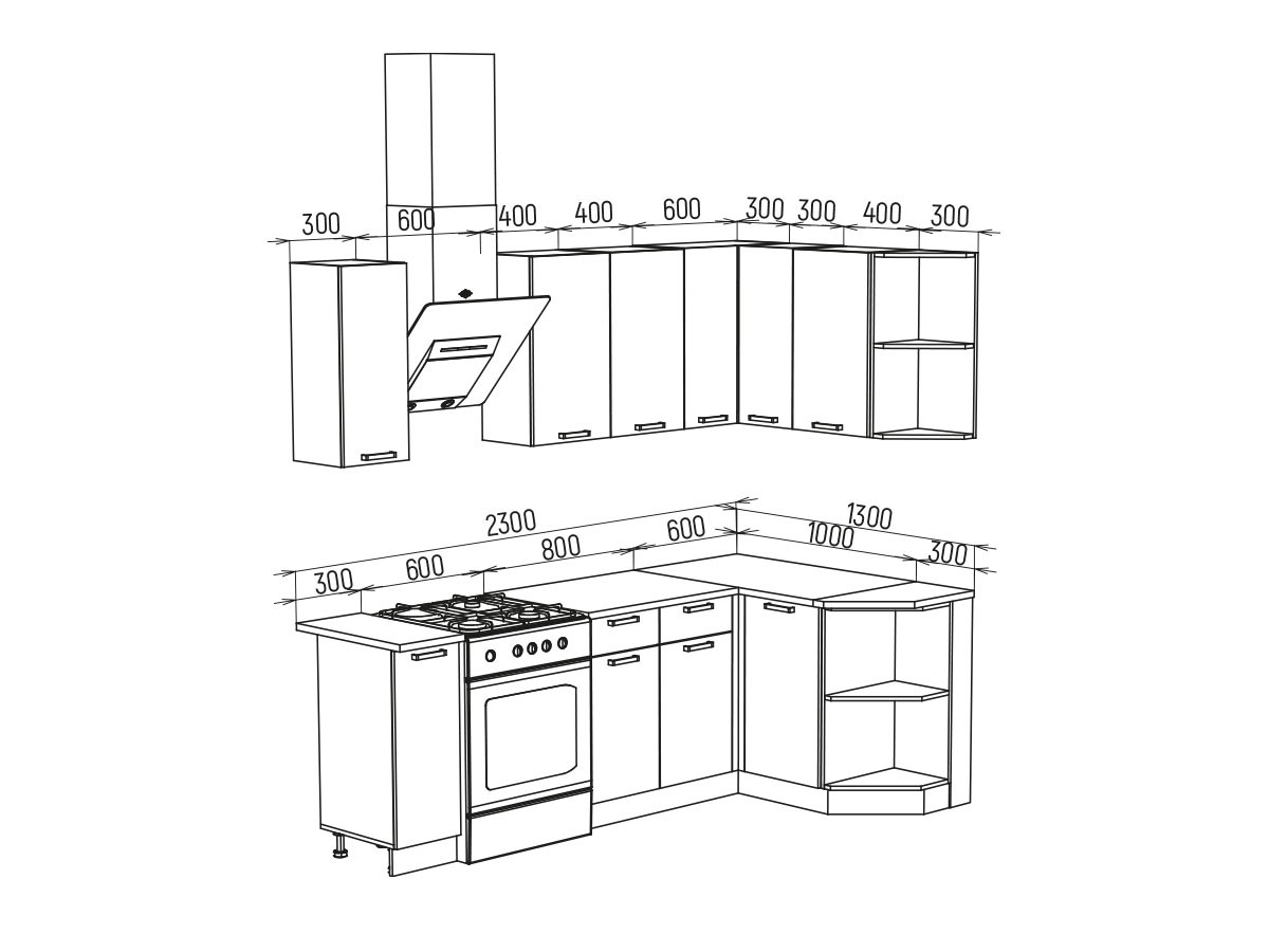 Столешница: 300; 800; 1000; 300 радиус правый.