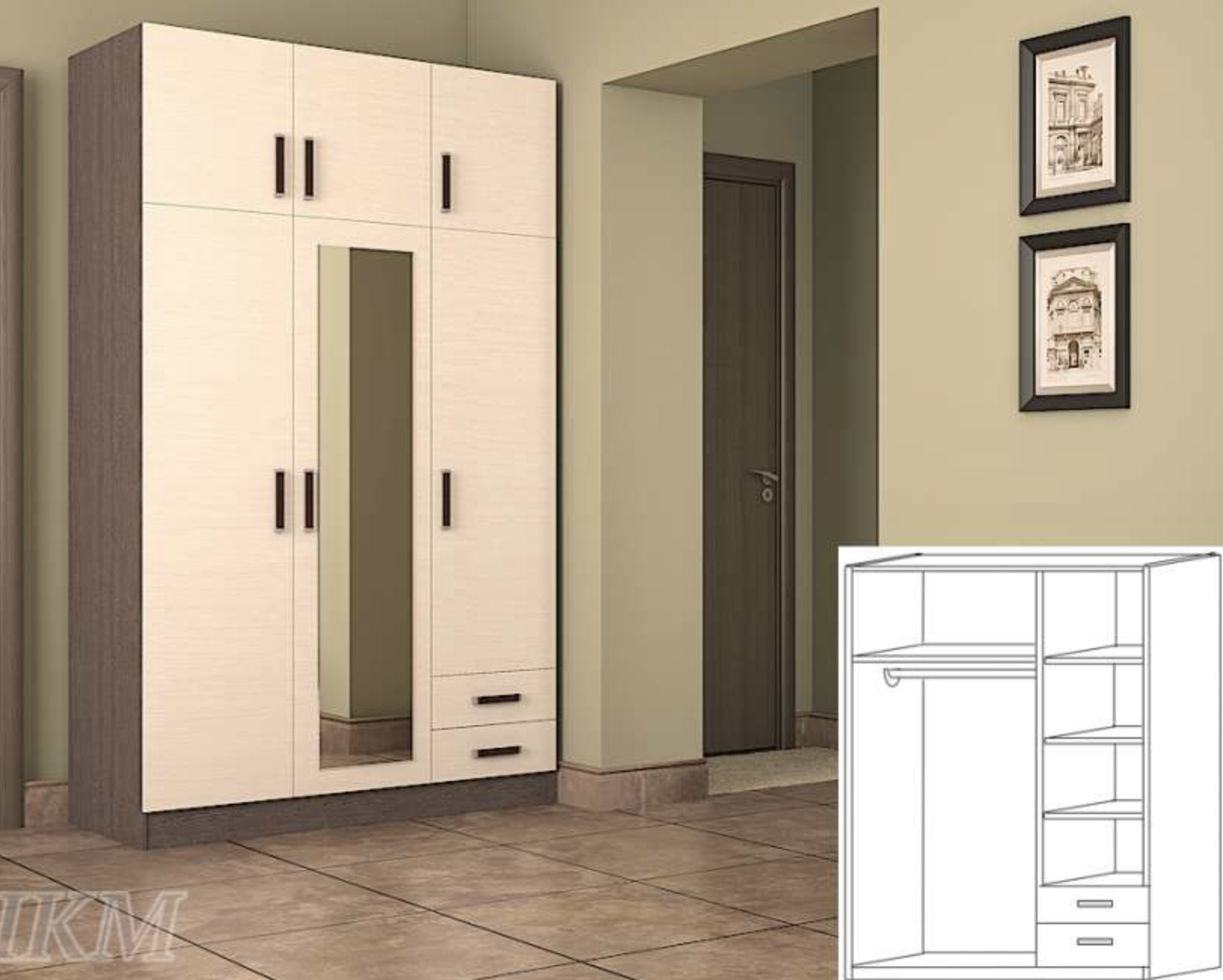 Шкафы распашные 3-дверные