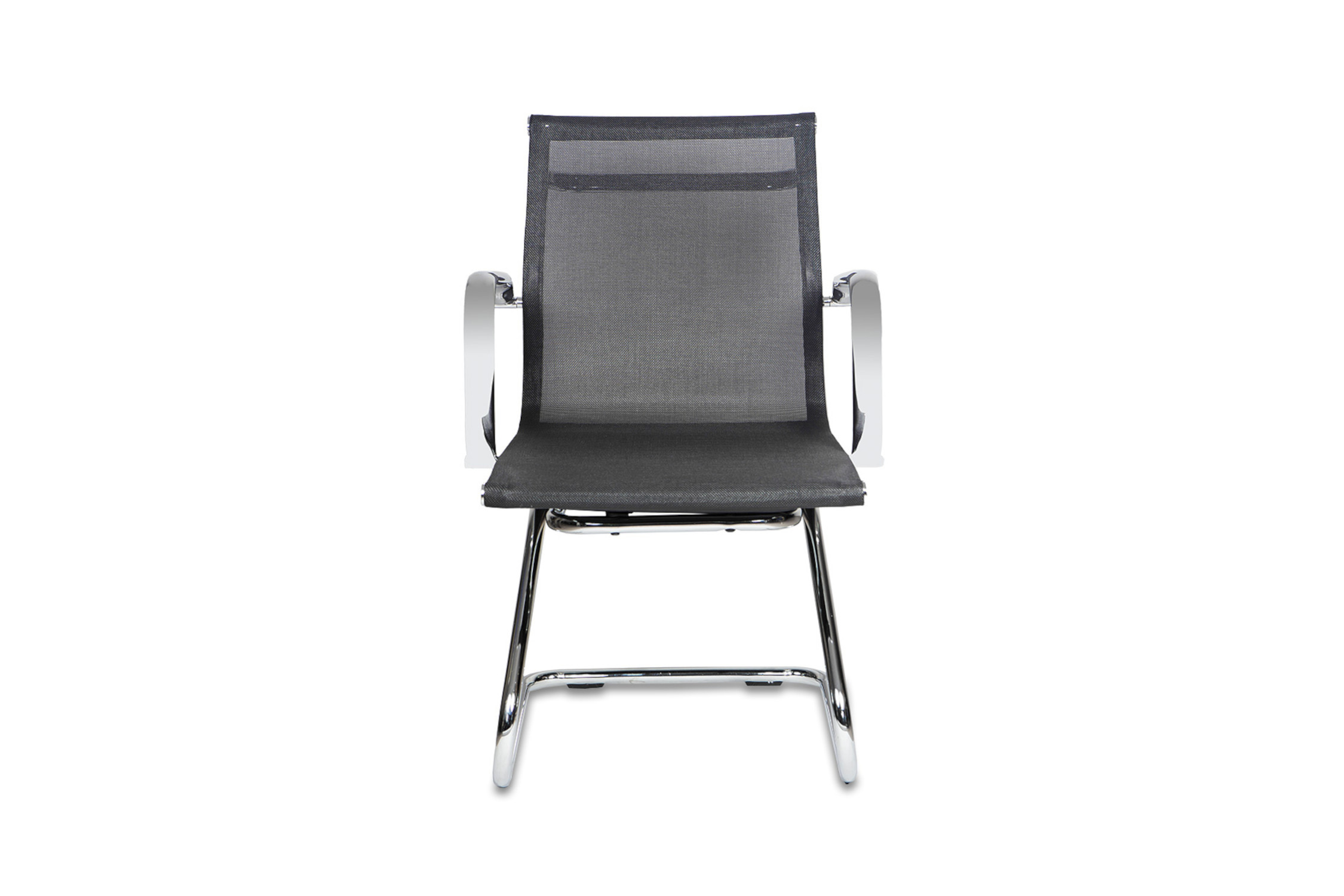 Высота сиденья - 48.5 см. Высота с подлокотниками - 69.5 см. Ширина сиденья - 50 см. Глубина сиденья - 46.5 см. Ширина полозьев - 50 см. Материал обивки: сетка (ПВХ + полиэстер). Спинка цельная с сиденьем. Подлокотники металлические хромированные без накладок.