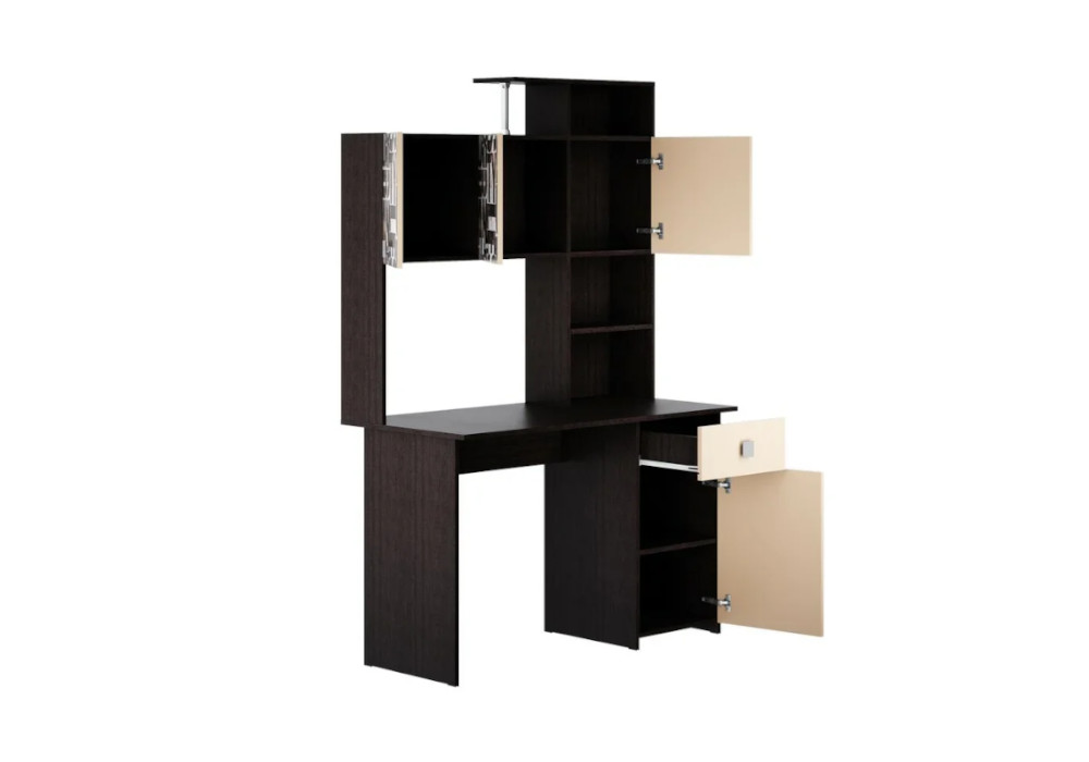 Рабочий стол (ШхГхВ): 120 х 57.8 х 75 см.; Надстройка (ШхГхВ): 120 х 22 х 107.6 см.; Тумба с выдвижным ящиком (ШхГхВ): 40 х 44.2 х 75 см.